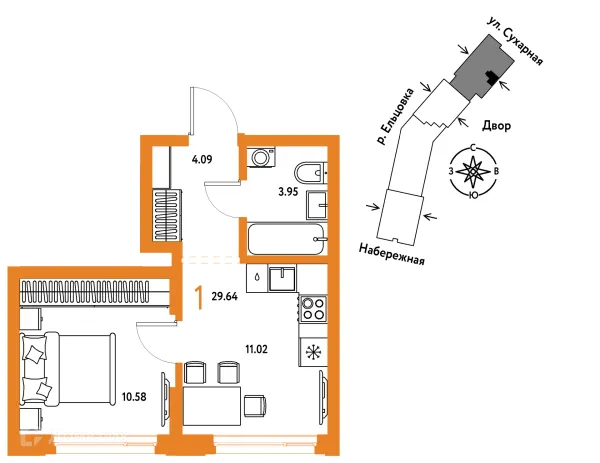 1 комн. квартира в Новосибирске в ипотеку от 69 976 руб/месяц
