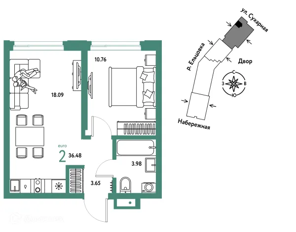 2 комн. квартира в Новосибирске в ипотеку от 104 414 руб/месяц