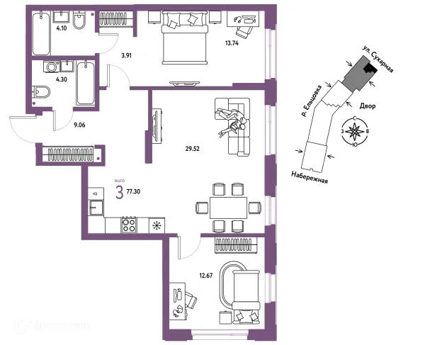 3 комн. квартира в Новосибирске в ипотеку от 113 267 руб/месяц