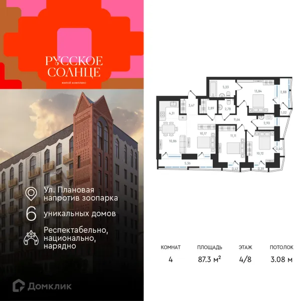 4 комн. квартира в Новосибирске в ипотеку от 110 175 руб/месяц