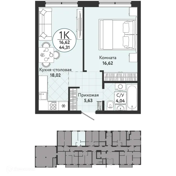 1 комн. квартира в Новосибирске в ипотеку от 31 058 руб/месяц