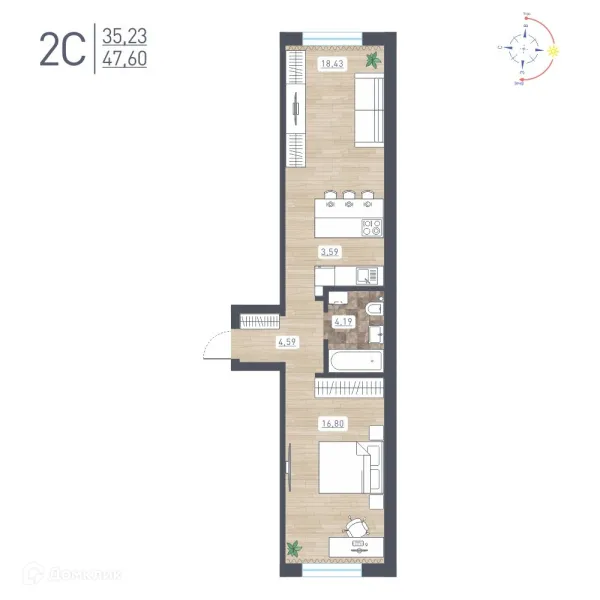 2 комн. квартира в Новосибирске в ипотеку от 31 963 руб/месяц