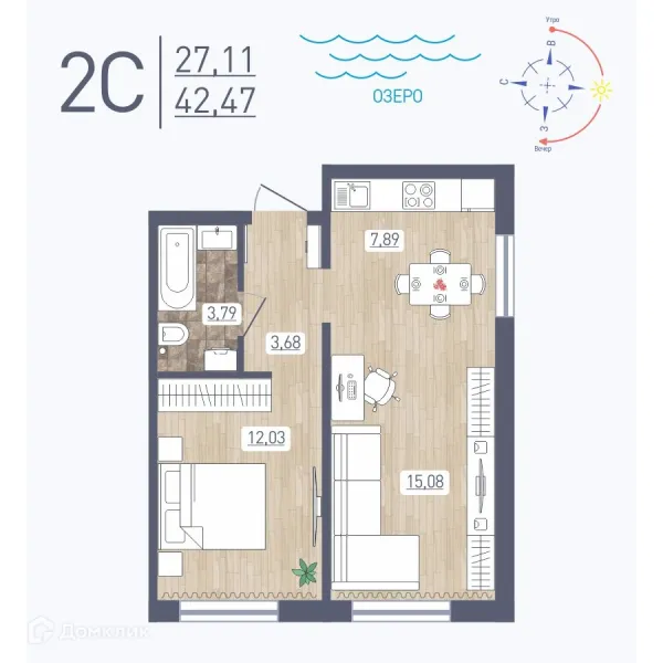 2 комн. квартира в Новосибирске в ипотеку от 40 054 руб/месяц