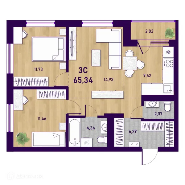 3 комн. квартира в Новосибирске в ипотеку от 56 167 руб/месяц