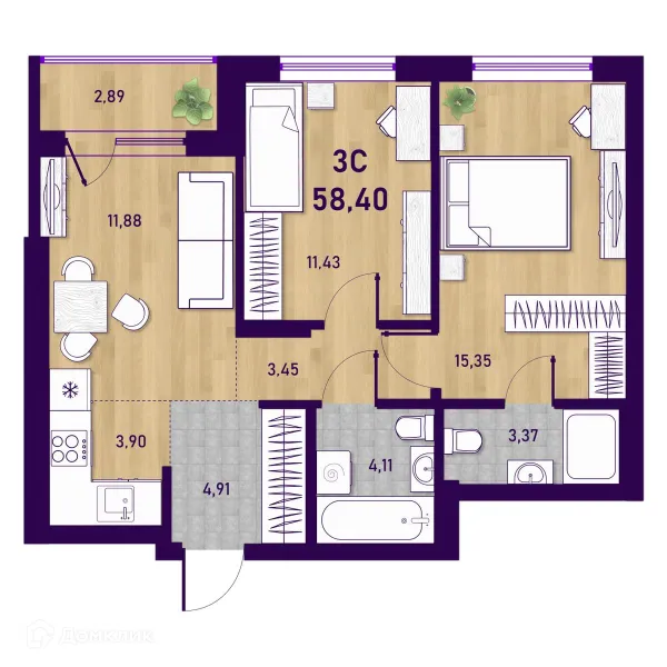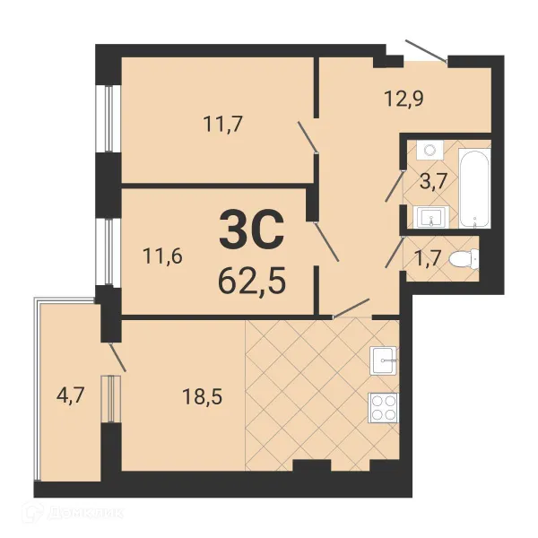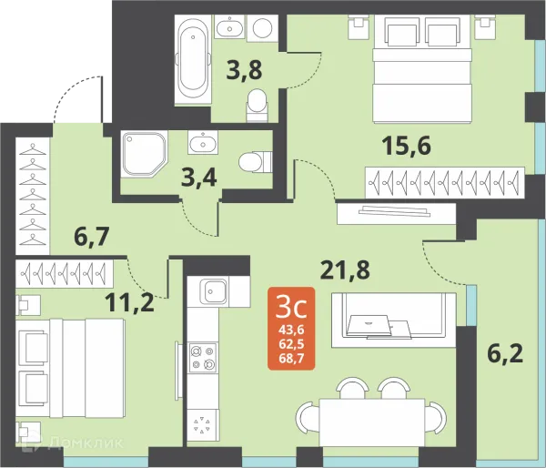 3 комн. квартира в Новосибирске в ипотеку от 60 488 руб/месяц
