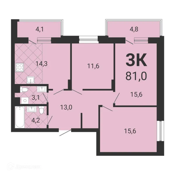 3 комн. квартира в Новосибирске в ипотеку от 72 855 руб/месяц