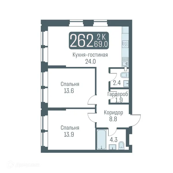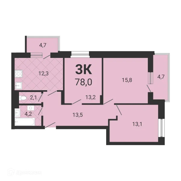 3 комн. квартира в Новосибирске в ипотеку от 75 394 руб/месяц