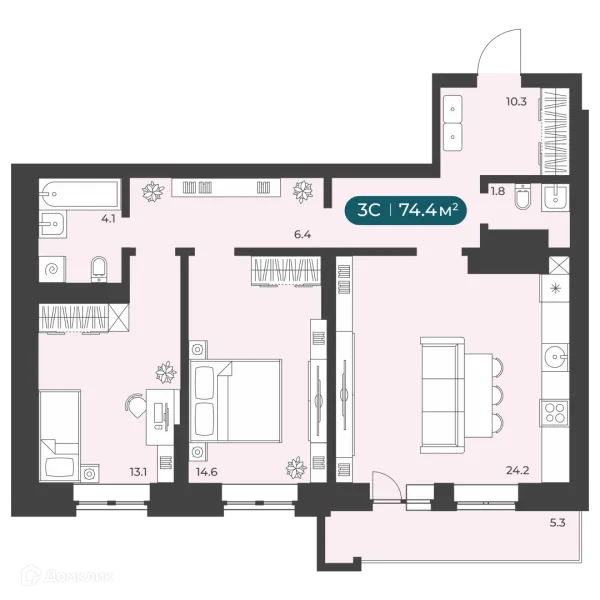 2 комн. квартира в Новосибирске в ипотеку от 54 573 руб/месяц