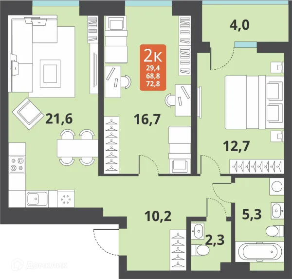 2 комн. квартира в Новосибирске в ипотеку от 43 206 руб/месяц