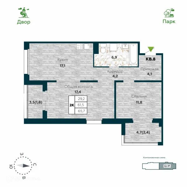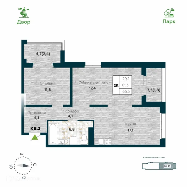 2 комн. квартира в Новосибирске в ипотеку от 61 928 руб/месяц