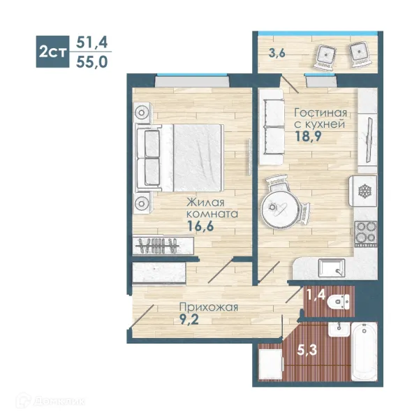 2 комн. квартира в Новосибирске в ипотеку от 47 382 руб/месяц