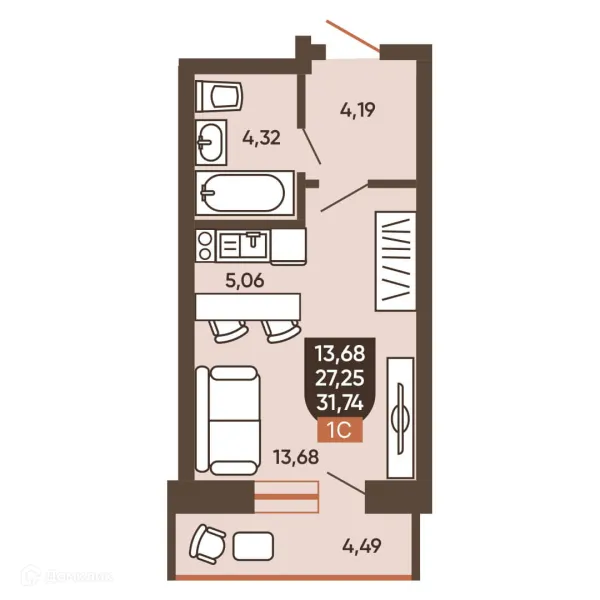 1 комн. квартира в Новосибирске в ипотеку от 27 919 руб/месяц