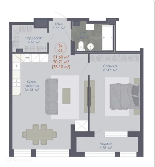 2 комн. квартира в Воронеже в ипотеку от 51 387 руб/месяц