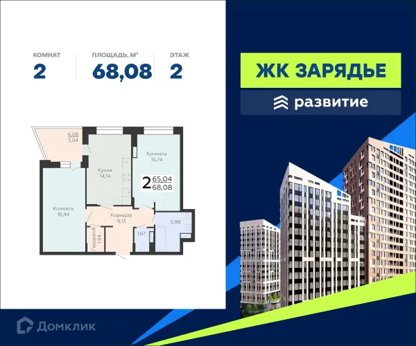 2 комн. квартира в Воронеже в ипотеку от 58 094 руб/месяц