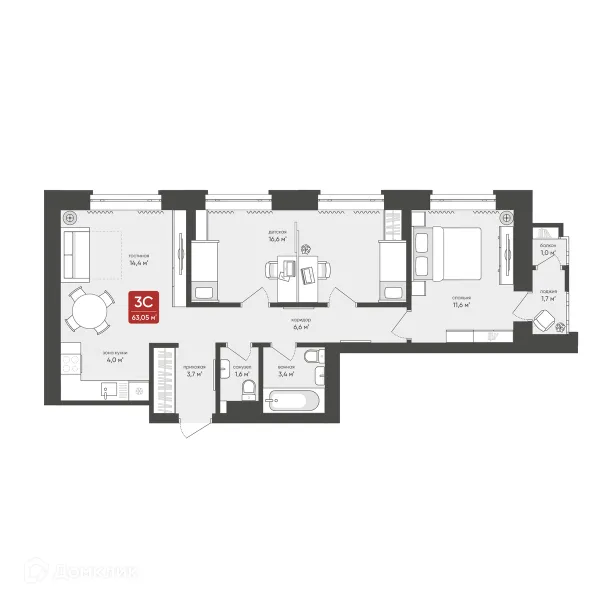 3 комн. квартира в Новосибирске в ипотеку от 92 172 руб/месяц