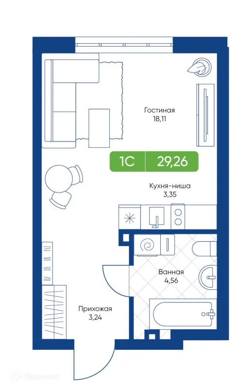 Студия квартира в Новосибирске в ипотеку от 23 945 руб/месяц
