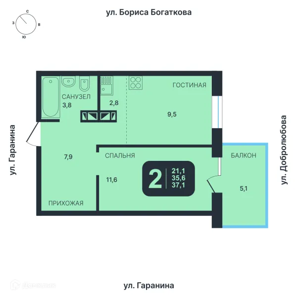 2 комн. квартира в Новосибирске в ипотеку от 62 769 руб/месяц