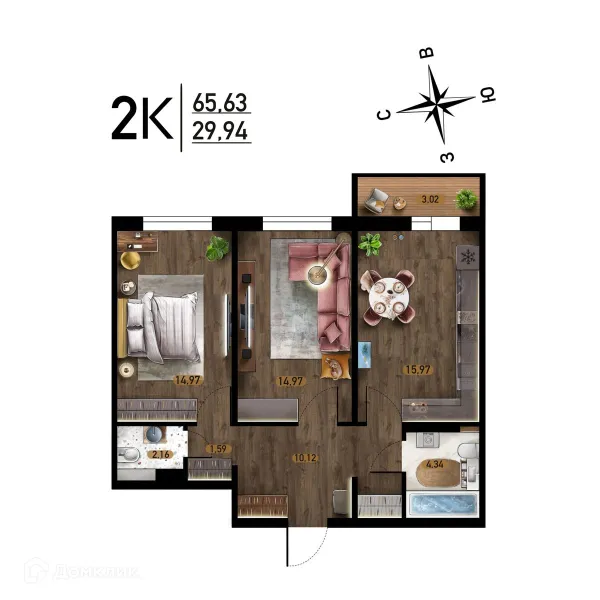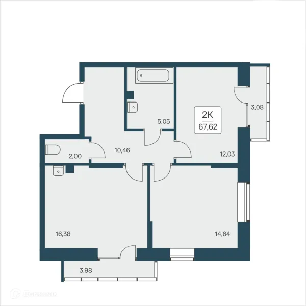 2 комн. квартира в Новосибирске в ипотеку от 49 652 руб/месяц