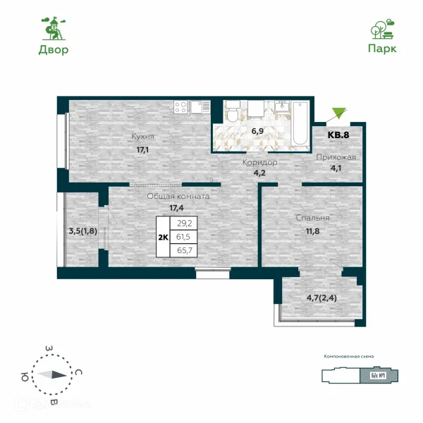 2 комн. квартира в Новосибирске в ипотеку от 34 330 руб/месяц