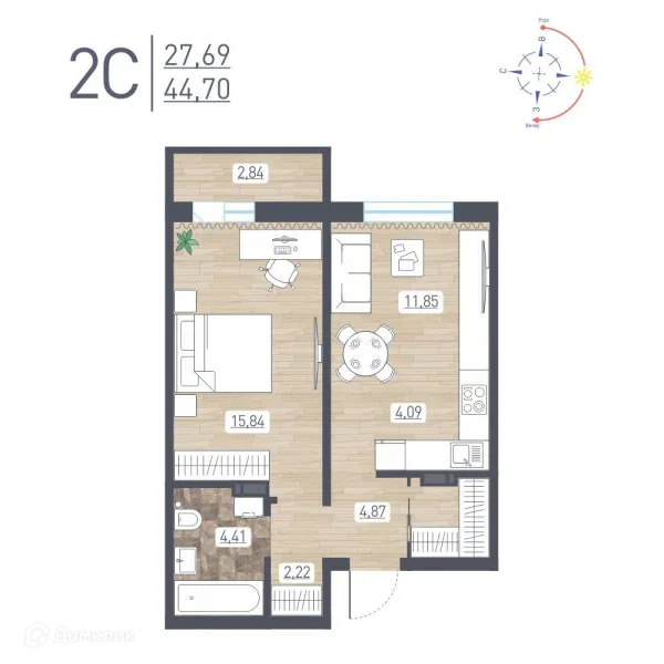 2 комн. квартира в Новосибирске в ипотеку от 41 543 руб/месяц