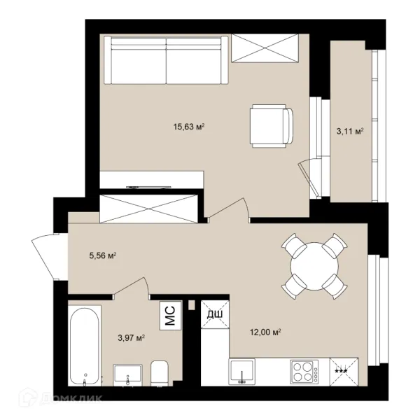 Студия квартира в Новосибирске в ипотеку от 91 034 руб/месяц