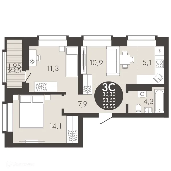 3 комн. квартира в Новосибирске в ипотеку от 60 848 руб/месяц
