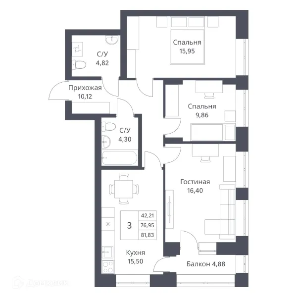 3 комн. квартира в Новосибирске в ипотеку от 49 732 руб/месяц