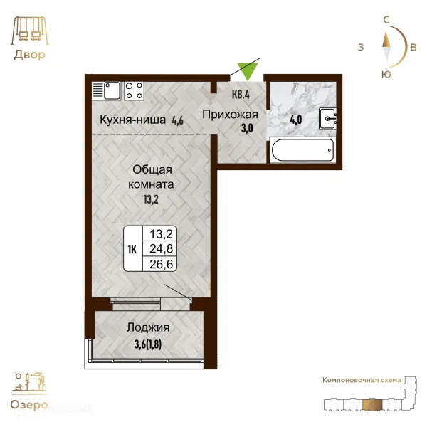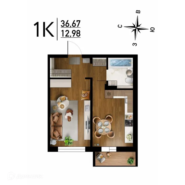 1 комн. квартира в Новосибирске в ипотеку от 34 924 руб/месяц