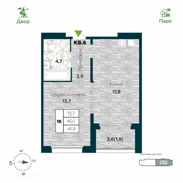 1 комн. квартира в Новосибирске в ипотеку от 47 886 руб/месяц