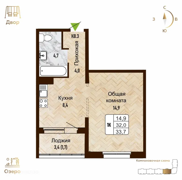 1 комн. квартира в Новосибирске в ипотеку от 33 700 руб/месяц