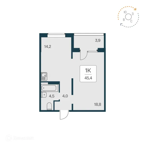 1 комн. квартира в Новосибирске в ипотеку от 42 845 руб/месяц