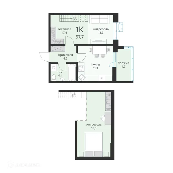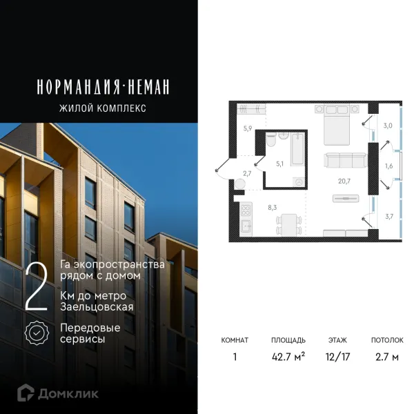 1 комн. квартира в Новосибирске в ипотеку от 57 161 руб/месяц