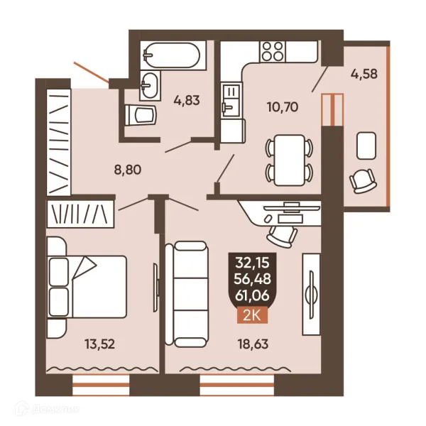 2 комн. квартира в Новосибирске в ипотеку от 55 669 руб/месяц