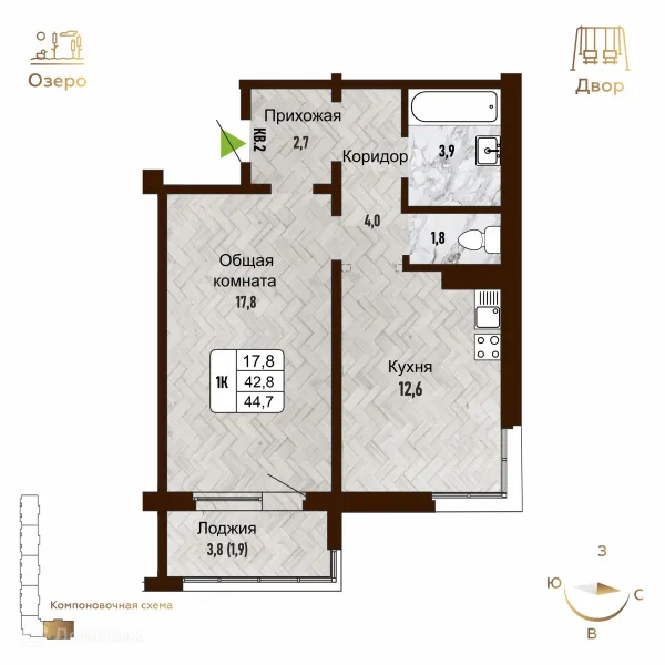 1 комн. квартира в Новосибирске в ипотеку от 47 526 руб/месяц