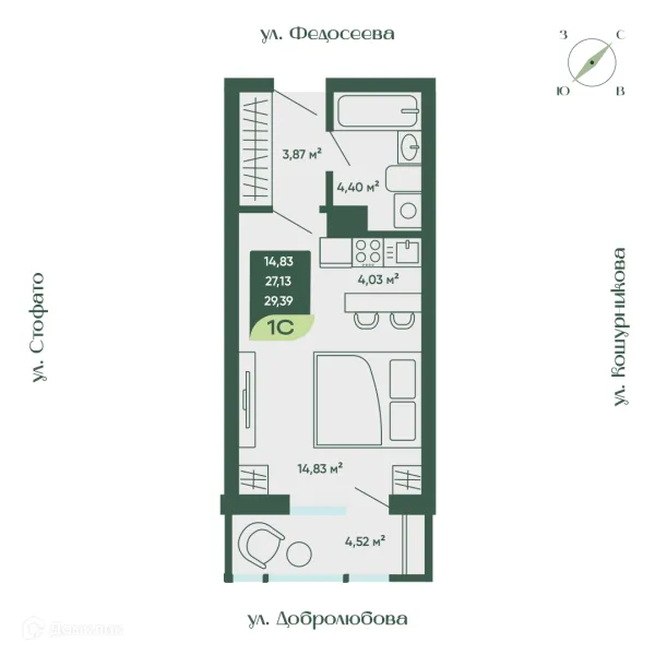 Студия квартира в Новосибирске в ипотеку от 52 855 руб/месяц