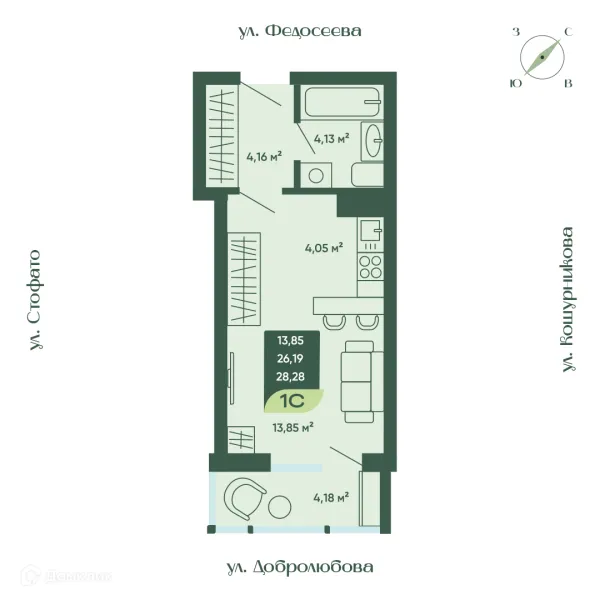 Студия квартира в Новосибирске в ипотеку от 40 685 руб/месяц