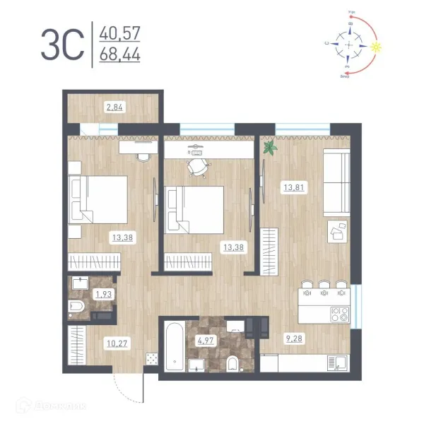 3 комн. квартира в Новосибирске в ипотеку от 93 181 руб/месяц