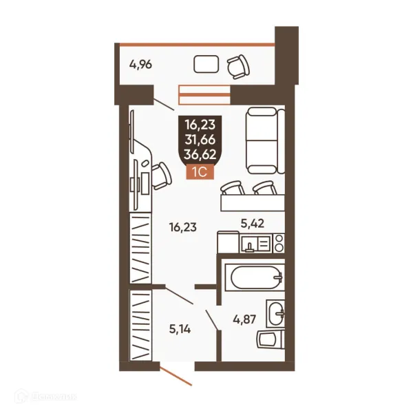 1 комн. квартира в Новосибирске в ипотеку от 35 442 руб/месяц