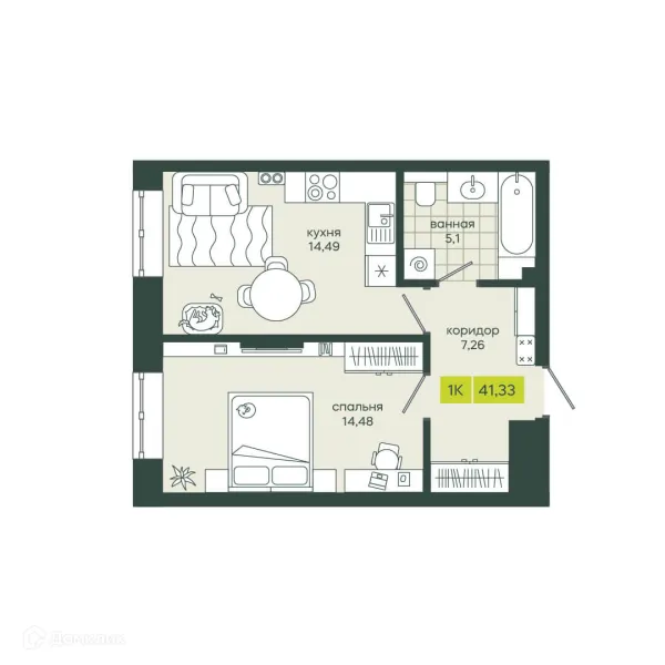 1 комн. квартира в Новосибирске в ипотеку от 41 981 руб/месяц