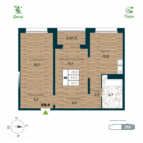 2 комн. квартира в Новосибирске в ипотеку от 58 904 руб/месяц