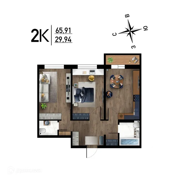 2 комн. квартира в Новосибирске в ипотеку от 61 928 руб/месяц