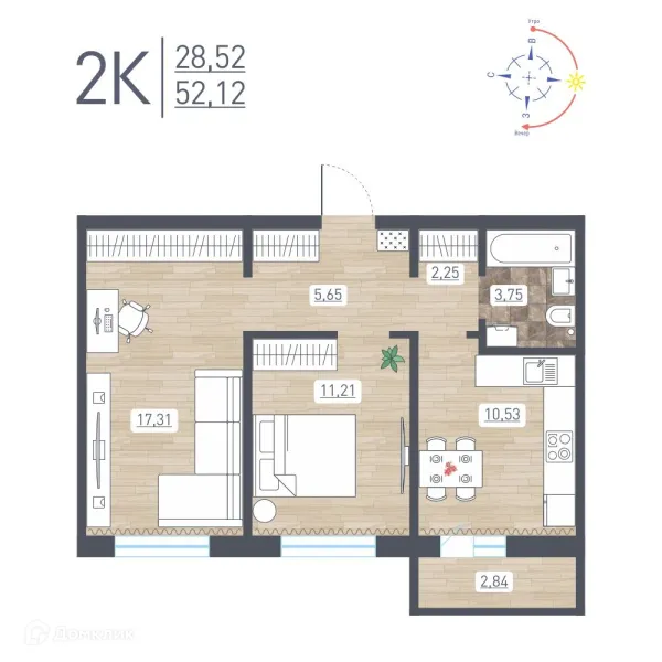 2 комн. квартира в Новосибирске в ипотеку от 34 427 руб/месяц