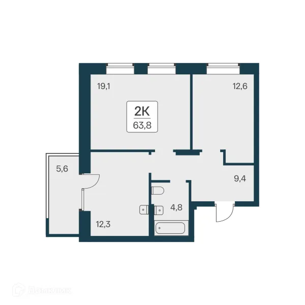 2 комн. квартира в Новосибирске в ипотеку от 86 052 руб/месяц
