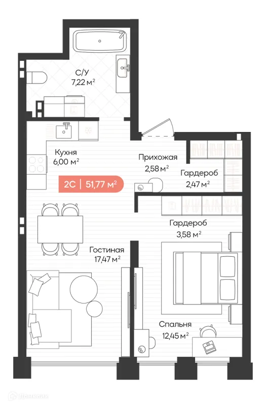 2 комн. квартира в Новосибирске в ипотеку от 51 847 руб/месяц