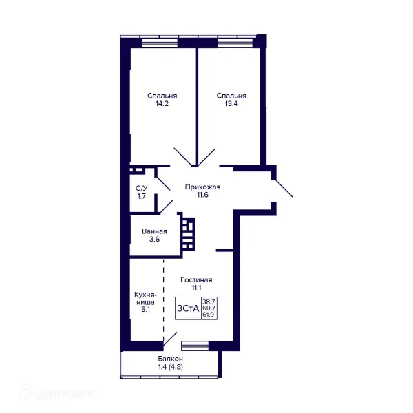 3 комн. квартира в Новосибирске в ипотеку от 104 660 руб/месяц