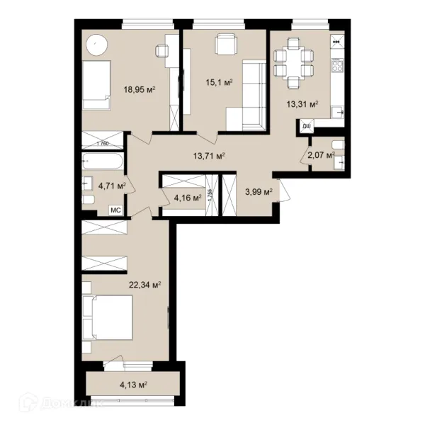 3 комн. квартира в Новосибирске в ипотеку от 134 887 руб/месяц