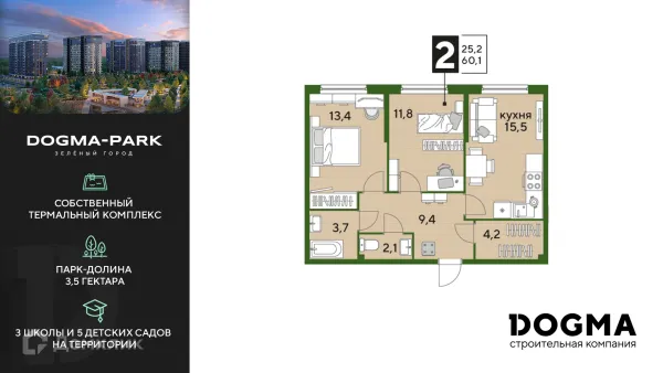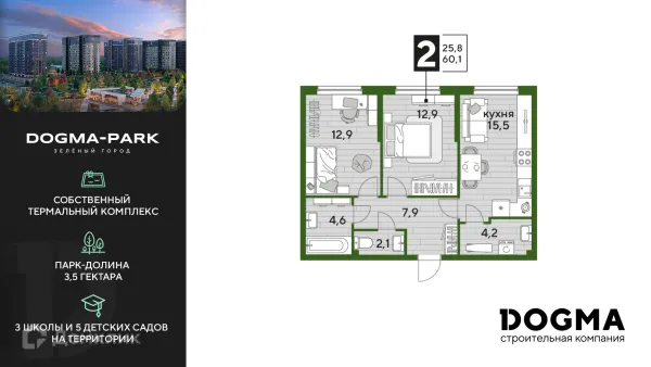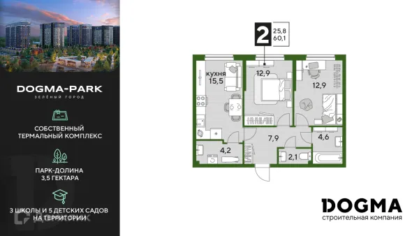 2 комн. квартира в Краснодаре в ипотеку от 60 284 руб/месяц