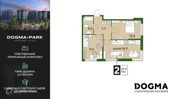2 комн. квартира в Краснодаре в ипотеку от 54 343 руб/месяц