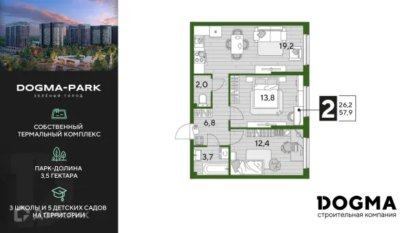 2 комн. квартира в Краснодаре в ипотеку от 57 329 руб/месяц
