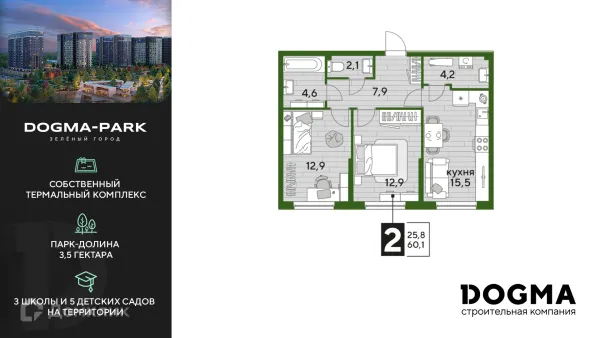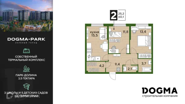 2 комн. квартира в Краснодаре в ипотеку от 65 782 руб/месяц
